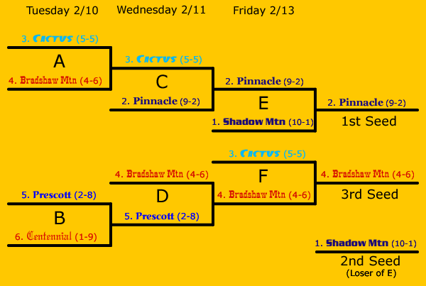 Both games on Friday will be played at Shadow Mountain. NO ADVANCE TICKET SALES. The 1st game will be played at 5:30 for 3rd Seed at State.The 2nd Game is at 7:00pm for 1st and 2nd Seed at State.